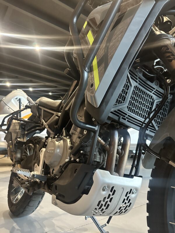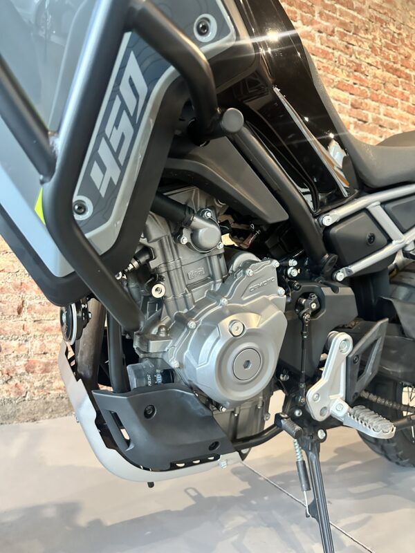 Equipada con motor bicilíndrico de 450 cc, ofrece una entrega de potencia progresiva y eficiente, ideal tanto para el uso urbano como para viajes en ruta y escapadas off-road. Su configuración permite un manejo ágil, con buena respuesta en bajas y medias revoluciones.